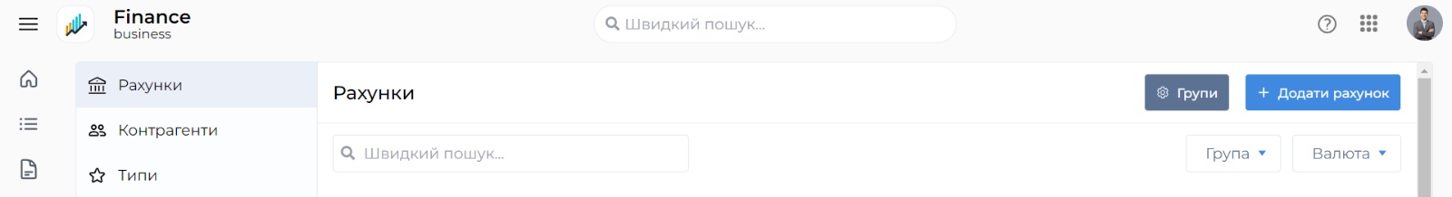 Функціонал групування рахунків дозволить вам легше і швидше вести облік фінансів. Якщо у вас багато рахунків або ви хочете вести водночас і власні кошти, і кошти бізнесу, ви можете використовувати цей функціонал, який значно спростить ваше життя!