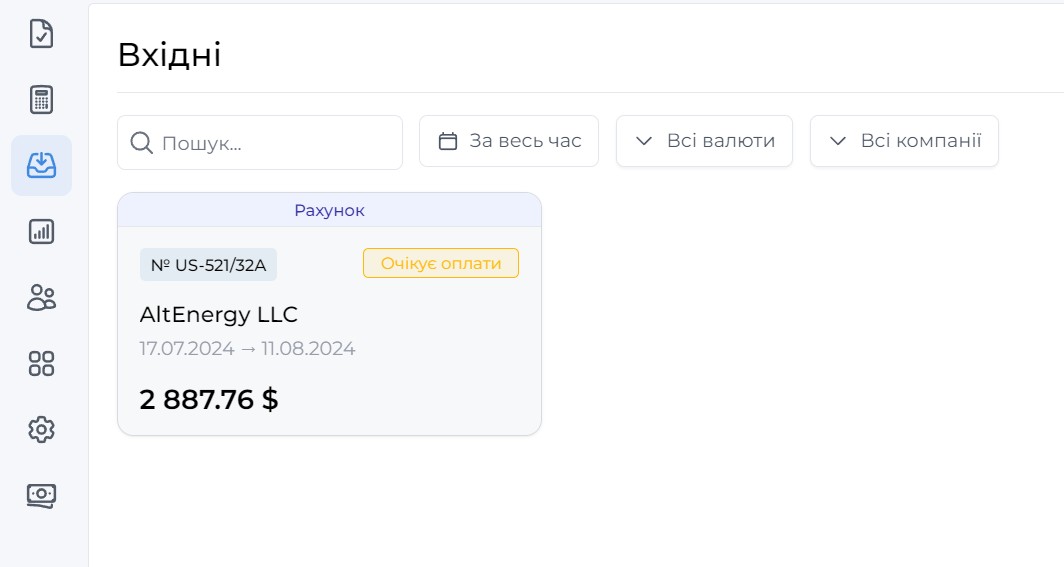 2. Отримуйте рахунки: Ваші партнери зможуть надсилати вам рахунки, які автоматично з'являться у вашому списку "Вхідні" в OneB Invoice.
